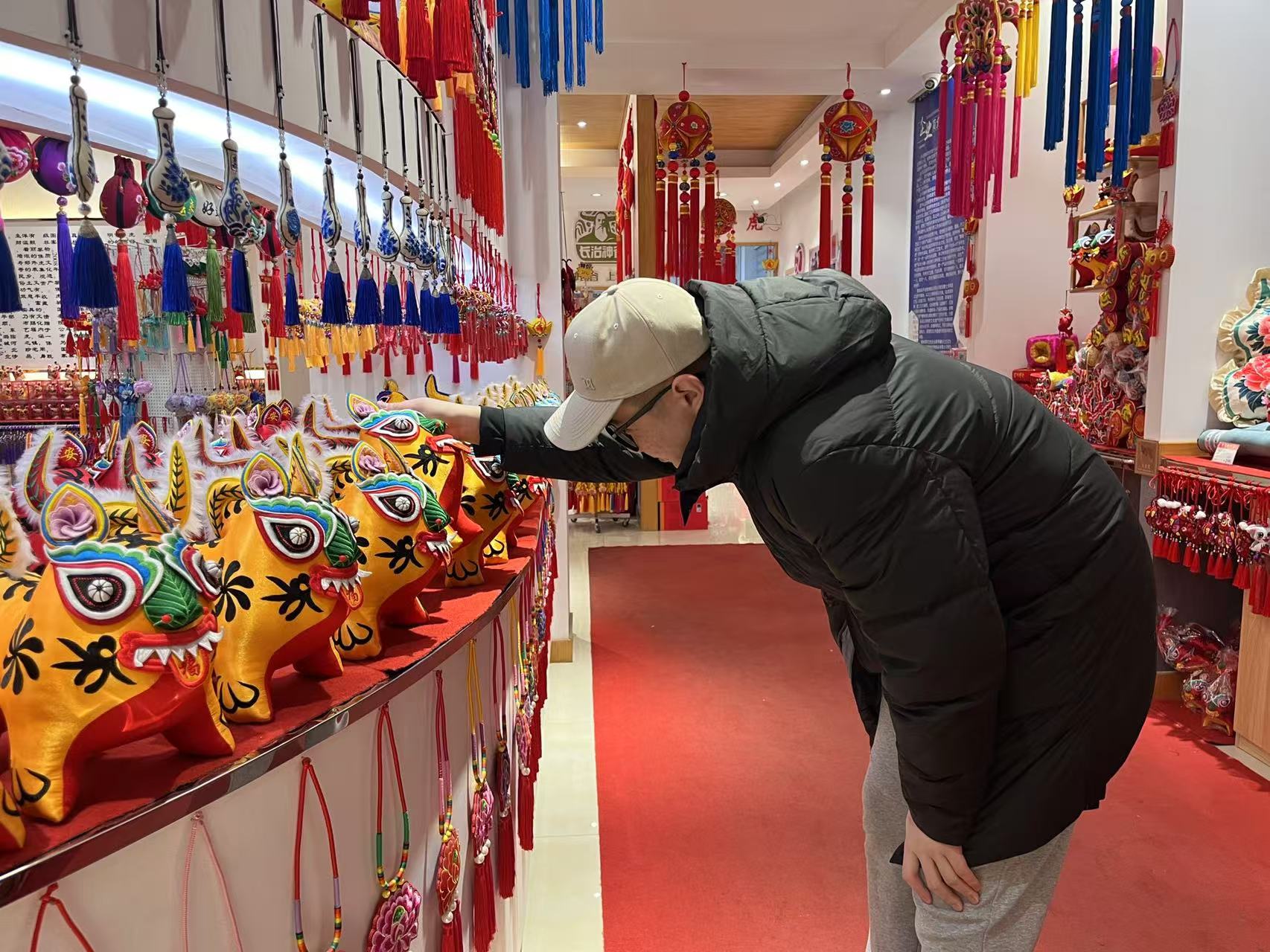 活动伊始,在企业工作人员的热情引导下,志愿者们依次走进黎侯虎文化展厅、机绣加工车间、刺绣车间及文创展厅,开启了一场非遗文化的探索之旅。在黎侯虎文化展厅内,一件件造型憨态可掬、色彩明快艳丽的黎侯虎作品整齐陈列,瞬间吸引了志愿者们的目光。大家驻足凝视,认真聆听工作人员讲解,细细探寻黎侯虎跨越千年的传承故事,深刻领会其蕴含的祈福纳祥、守护平安的民俗内涵。移步机绣与刺绣车间,机器的嗡鸣与针线的穿梭交织成独特的“匠心旋律”,志愿者们近距离观摩传统刺绣技艺与现代机绣工艺的巧妙融合,亲眼见证一块普通棉布历经裁剪、缝制、刺绣、编织等多道精细工序,蜕变为精美非遗产品的过程,无不惊叹于匠人们的精湛技艺。文创展厅里,兼具实用性与艺术性的非遗衍生产品琳琅满目,让志愿者们直观感受到非遗文化在当代市场中的鲜活活力与创新魅力。