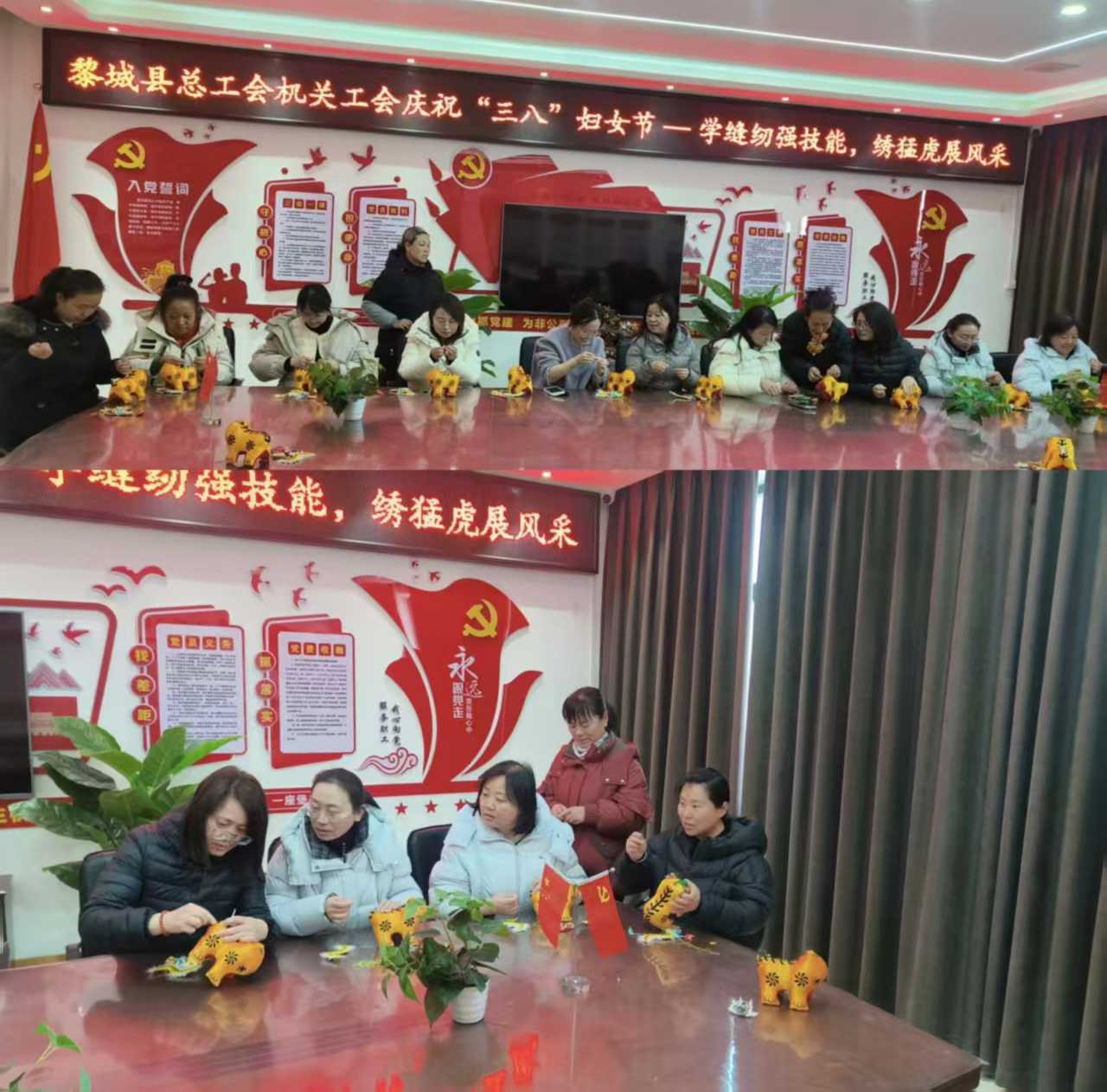 为庆祝第116个“三八”国际劳动妇女节,传承国家级非物质文化遗产,丰富女职工精神文化生活,3月6日,县总工会在乔老憨家纺棉制品有限公司举办“学缝纫强技能 绣猛虎展风采”黎侯虎缝制体验活动,共赴一场非遗文化与巾帼风采的邂逅。