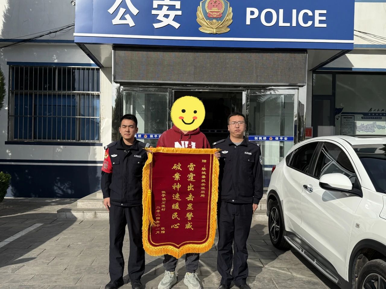 “警察同志,感谢你们帮我找回了遗失的手机,谢谢你们!”11月4日,苏先生将一面印有“雷霆出击显警威 破案神速暖民心”的锦旗送到黎侯派出所民警手中,对民警认真负责、热心为民的工作态度给予高度赞扬。