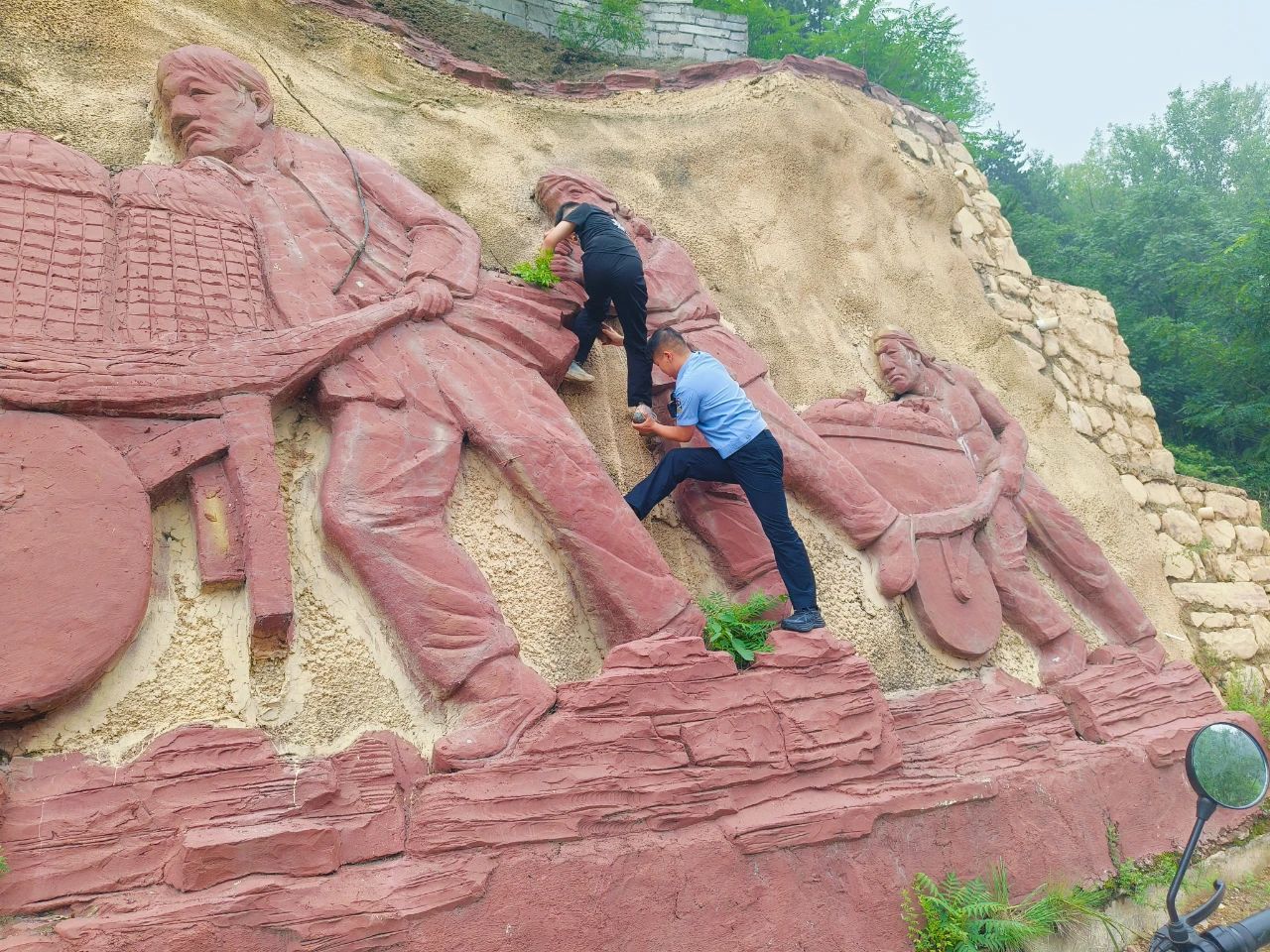 当日中午13时许,黄崖洞派出所民警在黄崖洞景区周边路段执行治安巡逻任务,行至景区入口壁画半坡附近时,发现一名约十一二岁的男孩正攀爬在半坡中段,坡下还站着一名同龄男孩。该半坡离地面近两三米,坡面陡峭,且因近期降雨格外湿滑。此时,攀爬的男孩仅靠双手紧抓一块石壁,脚下不时有泥土滑落,随时可能发生坠落险情。