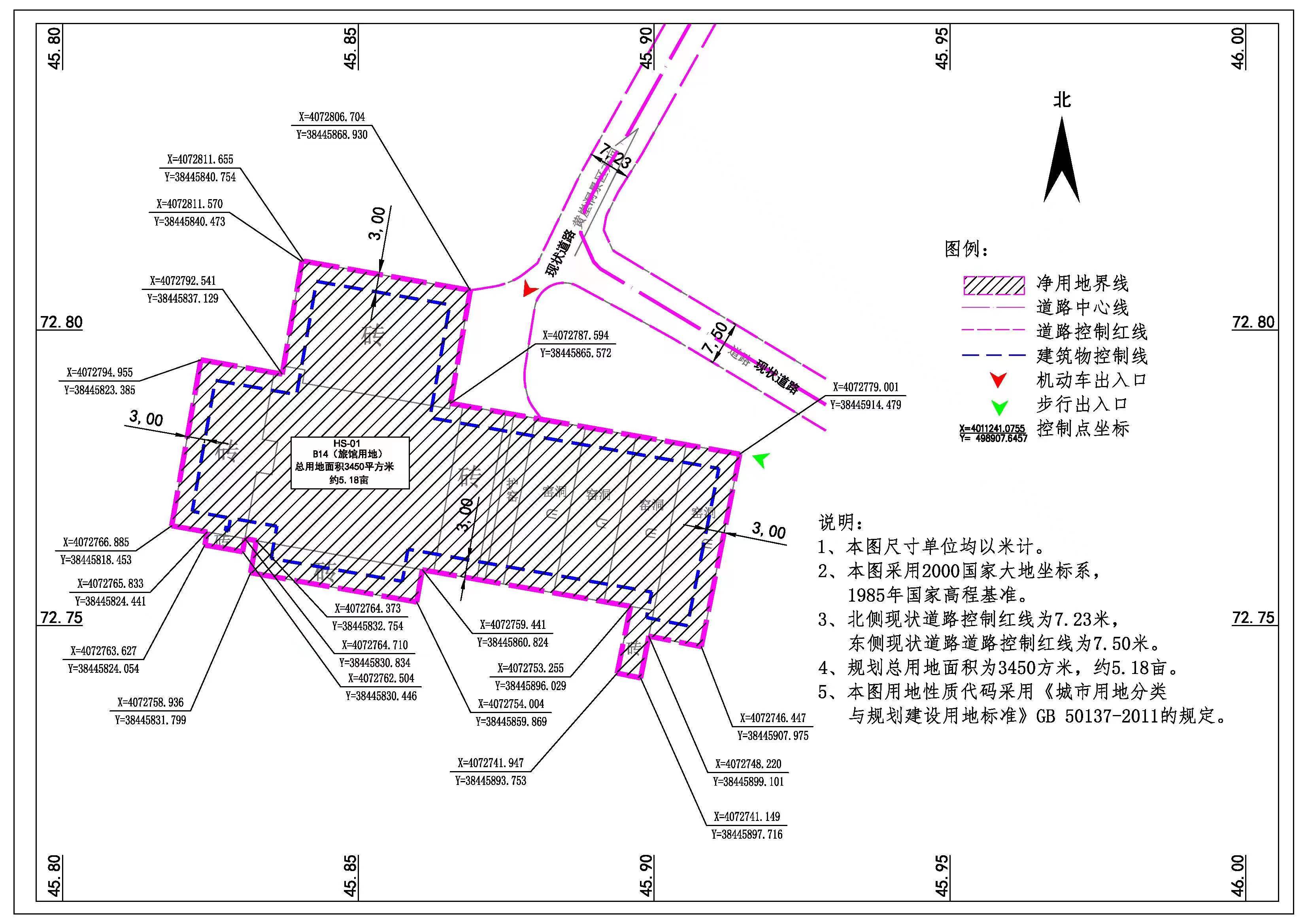 建筑物退让出让(划拨)地范围:东、南、西、北面均退让3m。 |