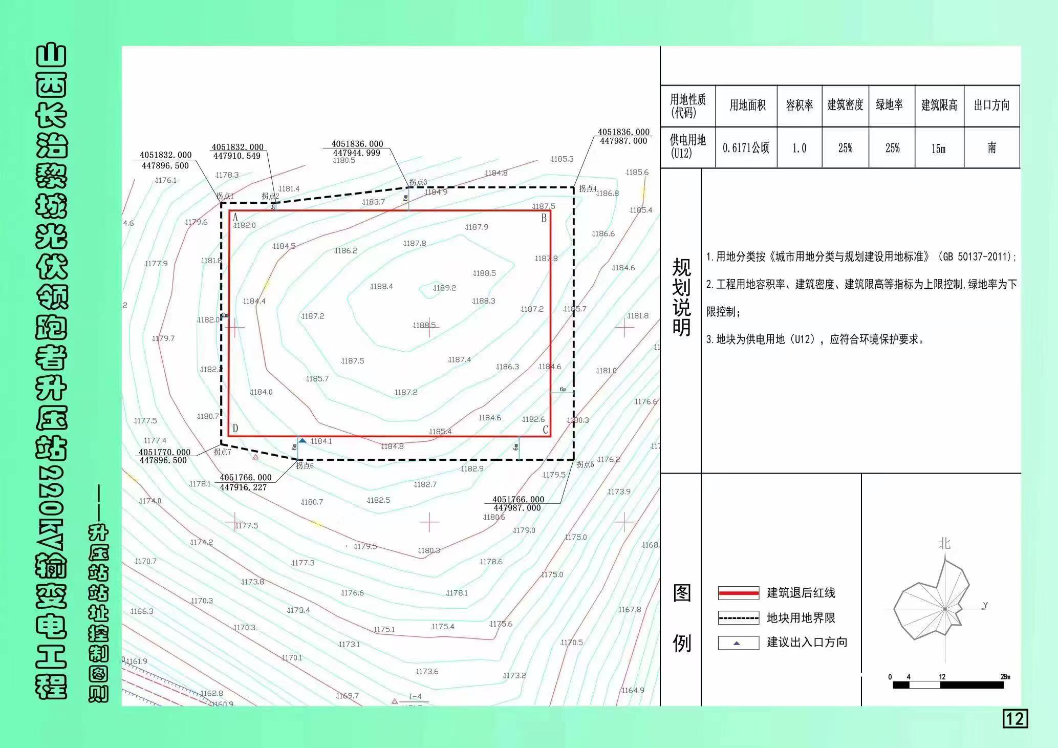 建筑物退让用地范围:东、南、北均退让6m,西、西南、西北退让2m。 |
