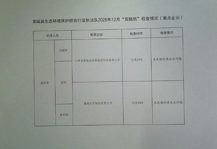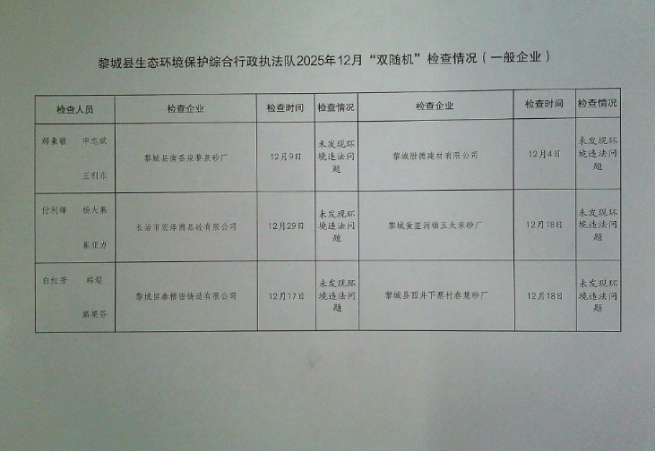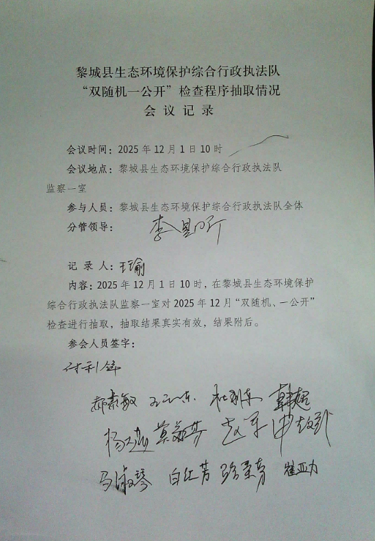 发文机关长治市生态环境局黎城分局 主题词双随机一公开