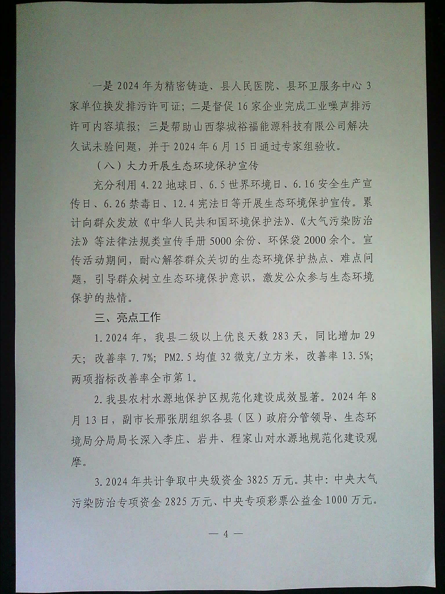 长治市生态环境局黎城分局2024年工作总结及2025年工作计划