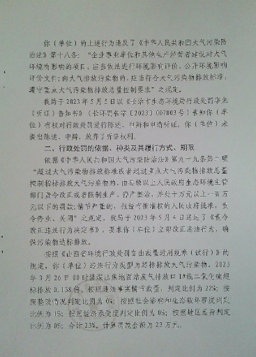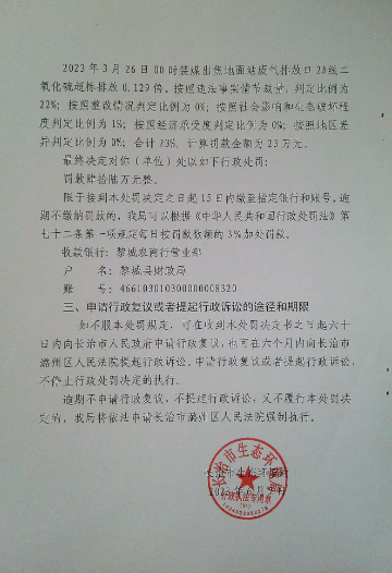 标题黎城县长福煤气焦化有限公司行政处罚决定书