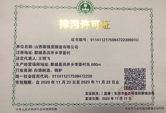 山西黎侯宴酿造有限公司排污许可证(副本)