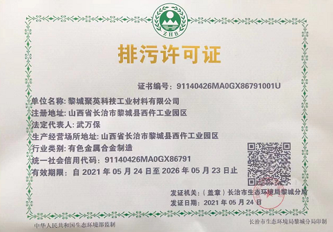 黎城聚英科技工业材料有限公司排污许可证(副本)