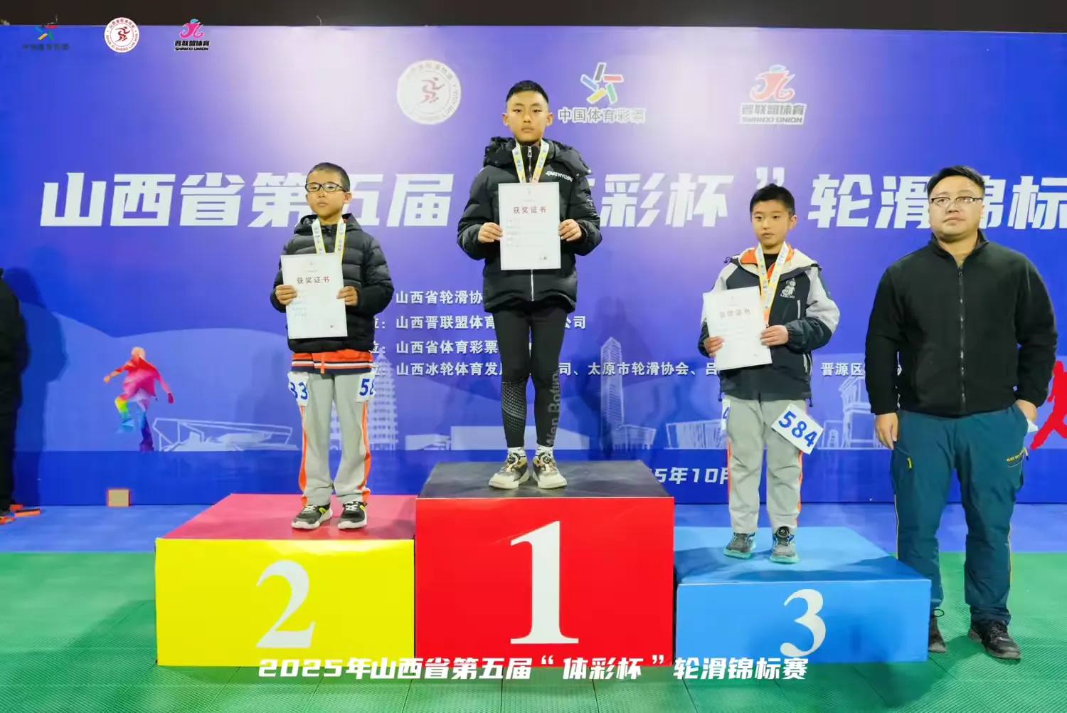 2025年山西省第五届“体彩杯”轮滑锦标赛在太原市隆重开幕。竞赛时间为2025年10月18日 - 10月19日。竞赛项目有速度轮滑(含专业组、休闲组和特邀校园组)、自由式轮滑等;年龄分组涵盖成年组、青年组、少年组、儿童组等。