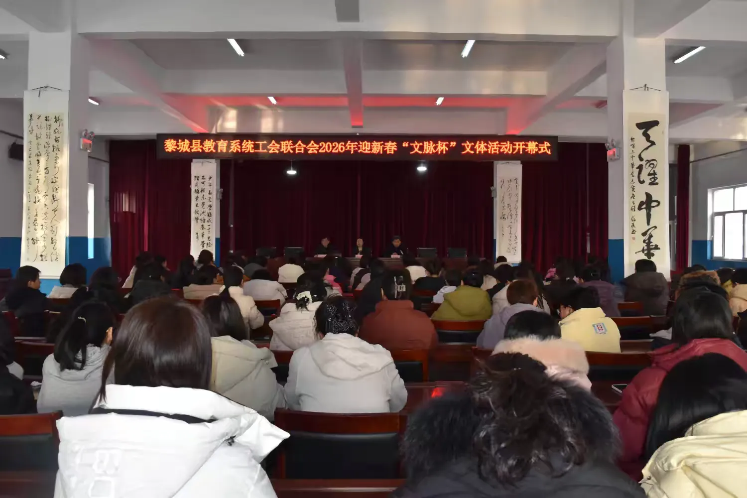 春临古黎,文脉飘香;杏坛逐梦,聚力启航。为喜迎新春佳节,丰富全县教职工精神文化生活,凝聚教育系统奋进力量,2月6日,由黎城县教育系统工会联合会主办、黎城三中承办的“文脉杯”教职工迎新春文体活动在黎城三中隆重举行。县教育工委专职副书记张玉芳同志、县教体局二级主任科员乔新北同志出席活动并发表热情洋溢的开幕辞,为本次活动拉开精彩序幕。全县各中小学、幼儿园(含高中、私立学校)教职工代表齐聚一堂,以棋会友、以壶传情,共赴一场兼具古韵风雅与团队热忱的新春之约。