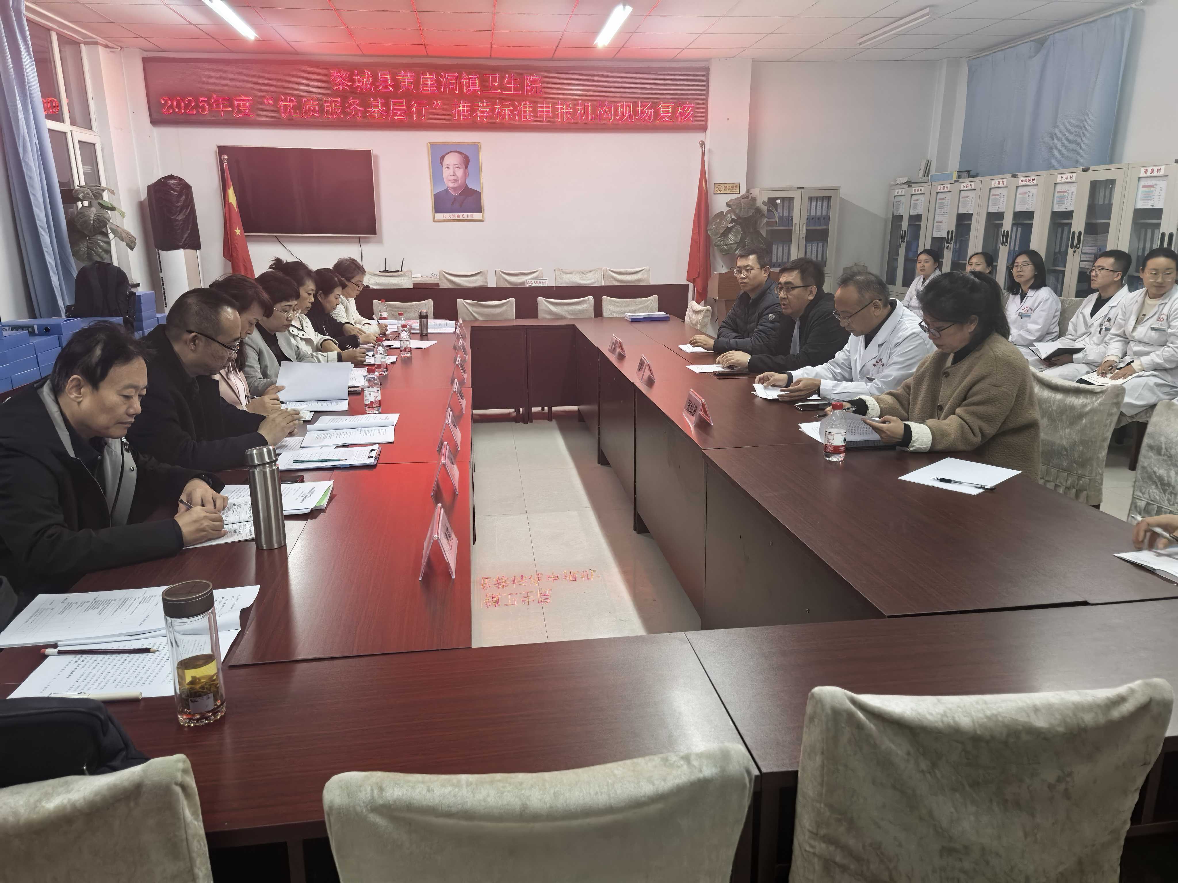 为推动“优质服务基层行”活动扎实有序开展,不断提升基层医疗卫生健康服务能力,2025年10月29日,省级现场评审专家组一行9人对我县2025年“优质服务基层行”拟达到推荐标准的黄崖洞镇卫生院进行现场评审验收。