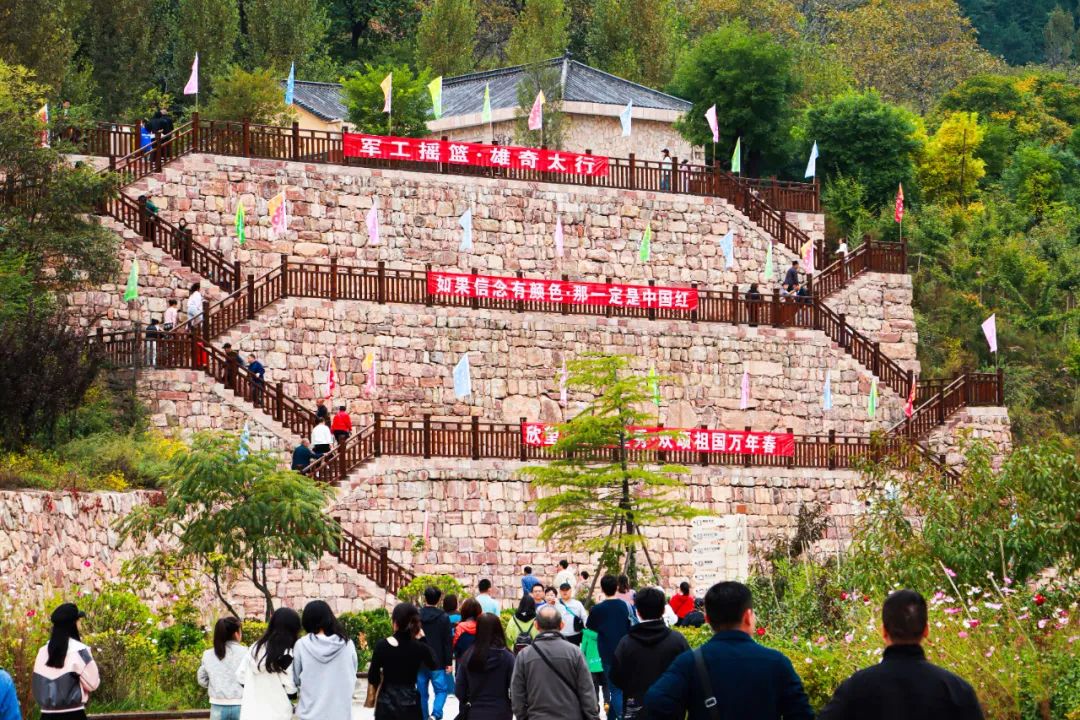 国庆假期到来之际,有“人民军工摇篮”美誉的黄崖洞文化旅游区,全新打造的祈福康养板块——善陀区域全面对外开放。革命旧址与时俱进,在扎实赓续红色血脉的基础上,结合当地善陀山村历史典故深入挖掘福文化,焕发出了新的生机,吸引了大量游客前来打卡。