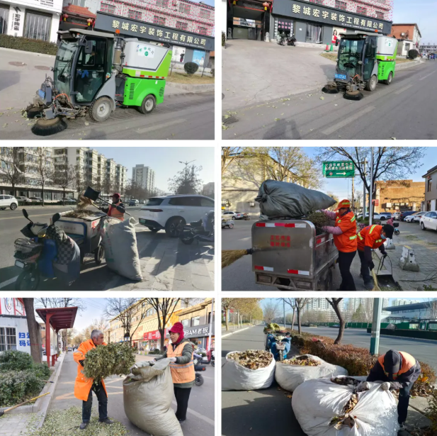 清理主次干道、街道落叶、杂草等,提升环境美观度。