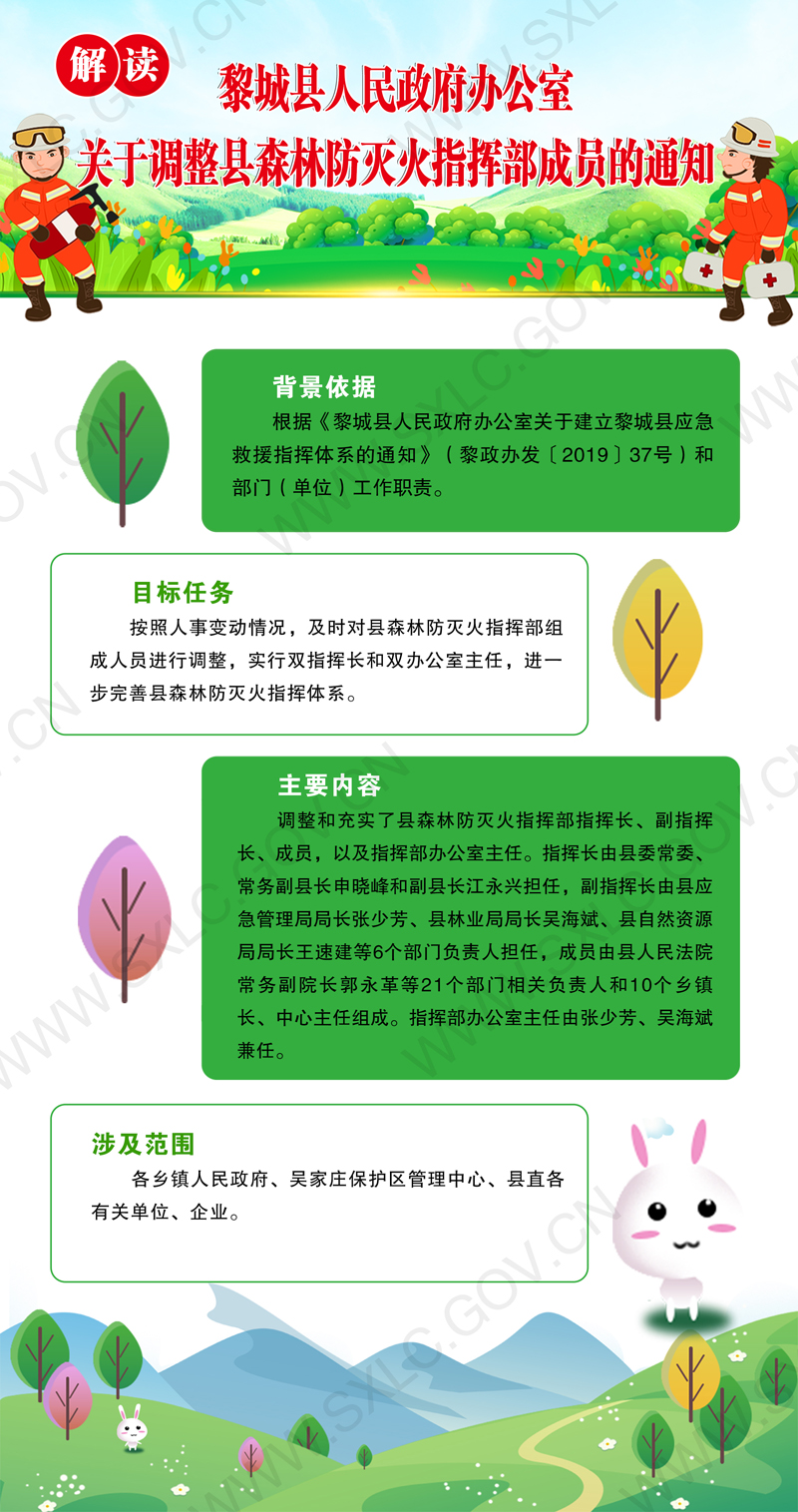 原文链接:《黎城县人民政府办公室关于调整县森林防灭火指挥部成员的通知》